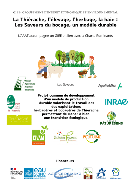 L’AAAT accompagne dans le cadre d’un GIEE « La Thiérache, l’élevage, l’herbage, la haie : les saveurs du bocage, un modèle durable » une dizaine d’exploitations d’élevage dans une démarche collective pour constituer une filière de qualité chartée avec pour objectif de